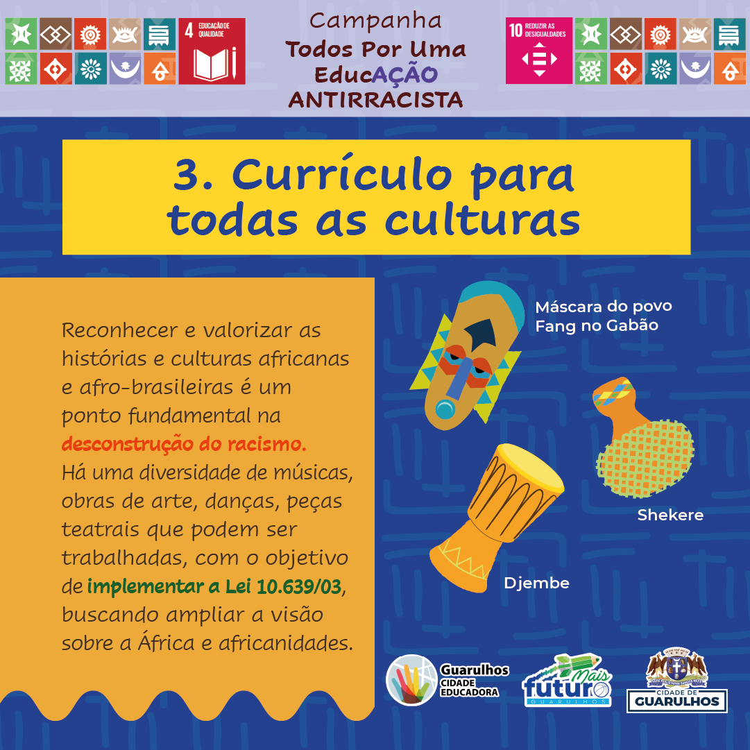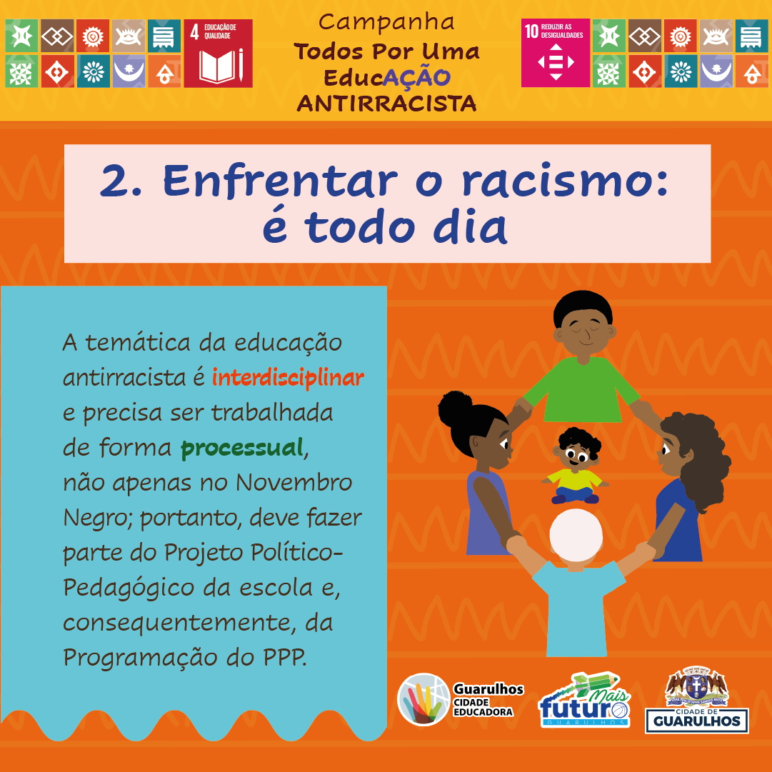 O objetivo desta proposta é reafirmar que, para alcançar uma sociedade democrática, justa e igualitária, devemos ter como meta a superação do racismo. Para tanto, a concepção e forma de educar, ou seja, o currículo que se desenha nos cotidianos das escolas precisa ser pautado em princípios antirracistas, que se concretizem  por meio das práticas pedagógicas.