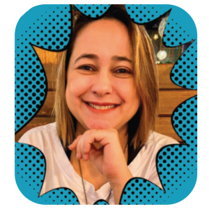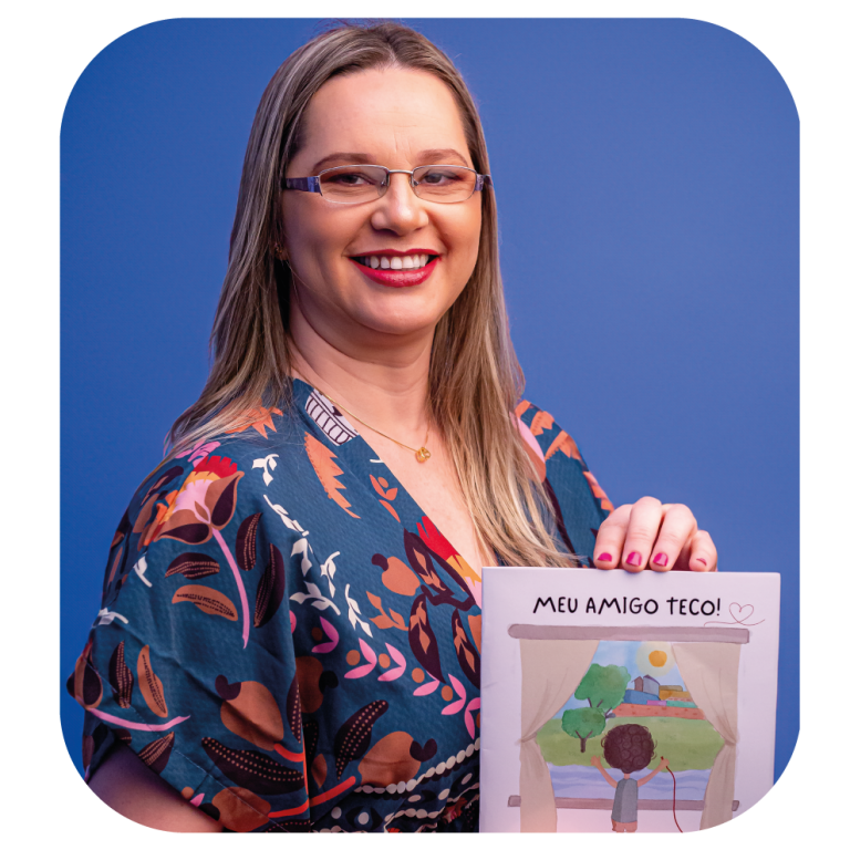 Formada em Pedagogia, é pós-graduada em Arte-Educação, Ludopedagogia, Arteterapia e Docência no Ensino Superior. Acredita profundamente no poder transformador da palavra, da arte e da ludicidade como caminhos para uma educação mais sensível, humana e significativa.
